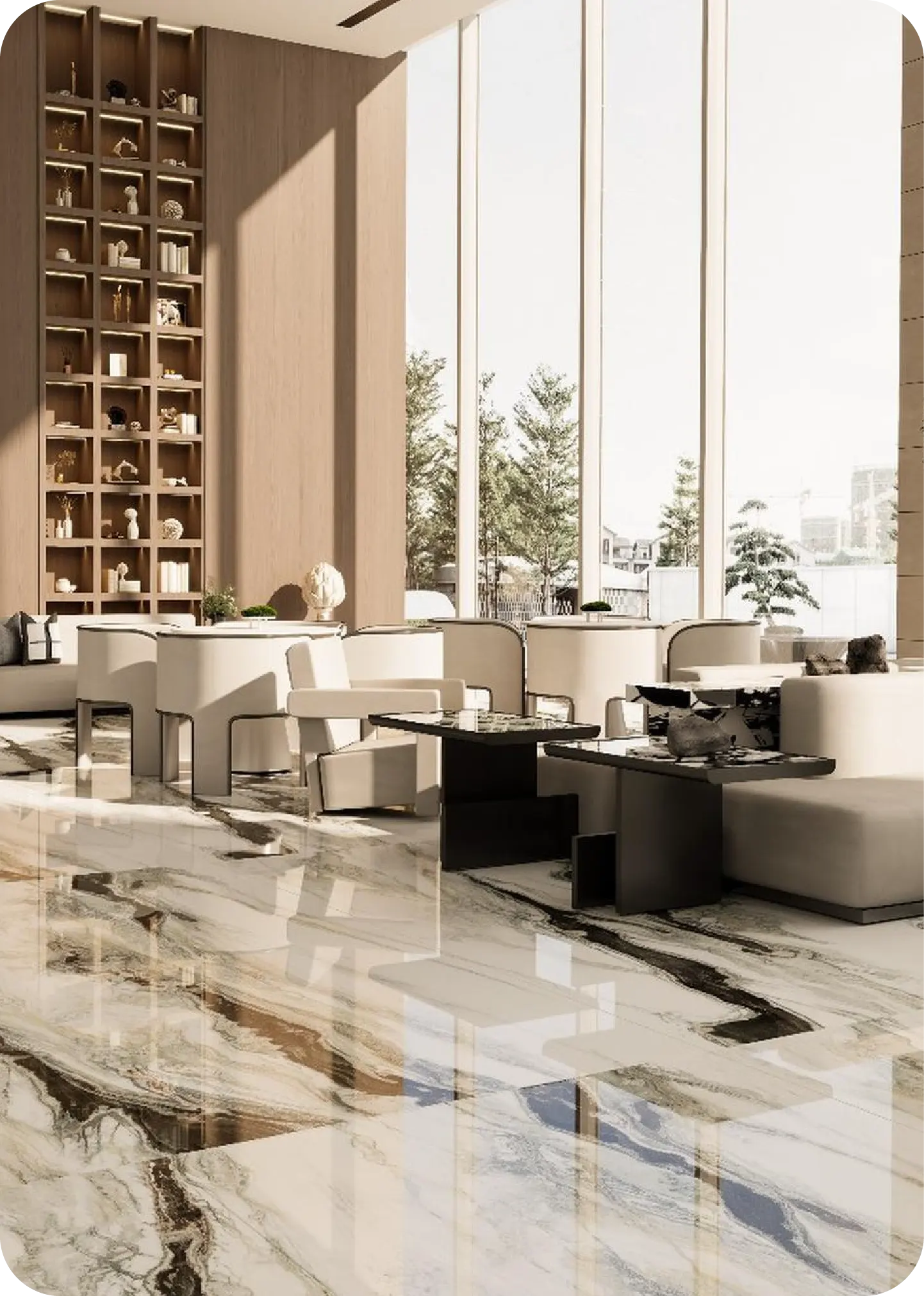 From expansive living rooms to large-scale commercial floors, our vitrified slabs deliver power, precision, and prestige in every inch.